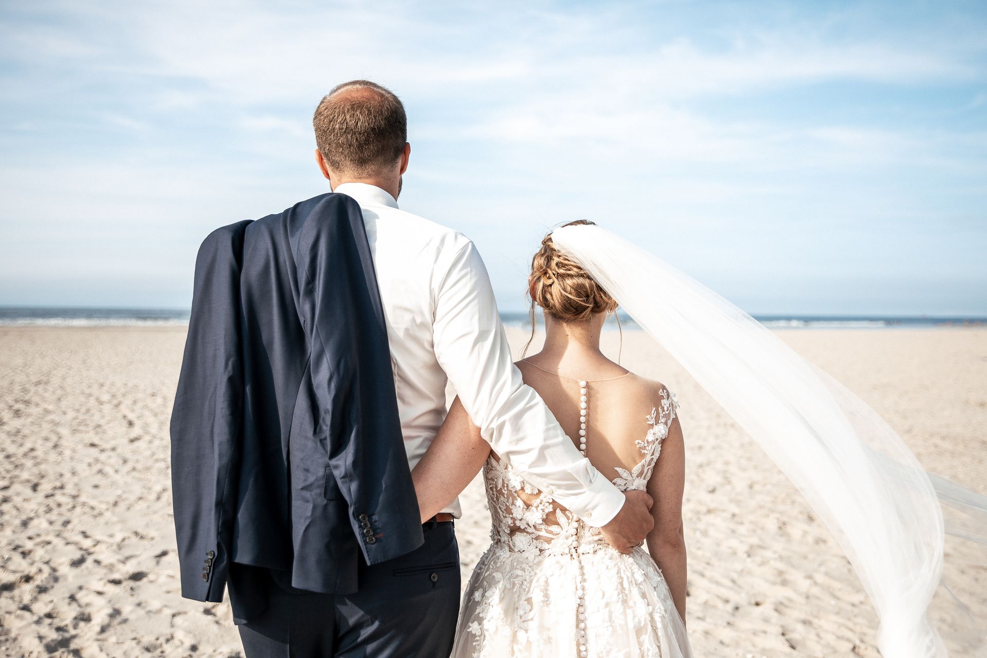 Paare, die sich für eine Hochzeit zu zweit entscheiden, kommen mit einer klaren Vorstellung auf die Insel. Sie wollen keinen großen Ablauf, kein großes Programm. Stattdessen wollen sie Zeit – für sich, für ihre Entscheidung und für diesen einen Tag. Egal, ob die Trauung im Standesamt stattfindet oder am Strand – der Ablauf bleibt überschaubar. Die Zeremonie steht im Mittelpunkt und wird in Ruhe genossen. Danach gibt es kein festes Programm, sondern einen offenen Rahmen. Alles darf, nichts muss. Fast immer gehört ein Spaziergang dazu. Raus an den Strand, Wind im Gesicht, Sand unter den Füßen. Die Paarfotos entstehen genau dort, ohne große Anweisungen, ungestellt. Ein Lachen, ein kurzer Blick, ein Moment des Stillstehens. Nach den Fotos suchen sich viele Paare einen gemütlichen Platz in einem Café oder Restaurant. Ein Kaffee, ein Stück Kuchen, kurz sitzen bleiben. Manche lassen den Tag langsam ausklingen, andere nutzen die Zeit, um die Insel weiter zu erkunden. Orte wiedersehen, neue Wege gehen, lange Spaziergänge machen. Zeit füreinander haben. Für mich als Fotografin bedeutet das, aufmerksam zu begleiten, weniger Eingreifen, weniger Anleiten. Ich halte fest, was passiert: ein Blick, eine Handbewegung. Ich halte fest, was sich zeigt: echte Nähe, kleine Gesten, ruhige Momente. Die Bilder entstehen aus der Situation heraus, nicht aus einer Vorstellung davon, wie etwas aussehen soll. Heiraten zu zweit ist kein Verzicht. Es ist eine bewusste Entscheidung für Ruhe, Nähe und Zeit. Für einen Hochzeitstag, der leicht wirkt und lange in Erinnerung bleibt-besonders auf Juist.