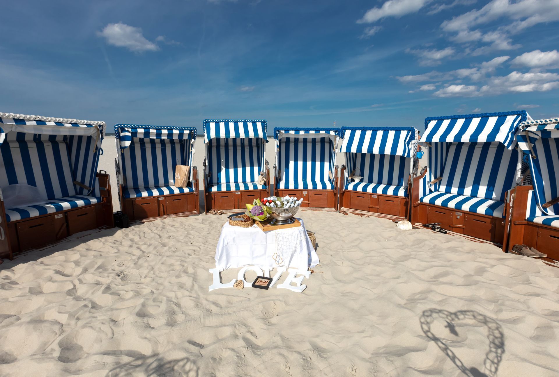 Wer sich für eine Hochzeit am Strand auf Juist entscheidet, wählt ganz bewusst das Draußen. Das Meer, die Weite, das Licht und der Wind gehören dazu. Genau deshalb spielt das Wetter bei der Planung eine große Rolle. Das Wetter auf der Insel lässt sich nicht im Voraus festlegen. Für eine Strandtrauung ist das kein Nachteil, solange man Alternativen frühzeitig einplant und den Ablauf nicht nur für ideale Bedingungen denkt. Viele Paare planen die Zeremonie am Strand und einen kleinen Sektempfang im Anschluss. Damit dieser unabhängig vom Wetter stattfinden kann, ist bewusste Vorbereitung wichtig. Geschützte Orte sollten frühzeitig reserviert werden. Spontan auszuweichen ist auf Juist nicht immer möglich, vor allem in der Saison. Wer hier vorausplant, nimmt spürbar Druck aus dem Tag. Geeignete Orte für einen geschützten Empfang sind zum Beispiel die Hohe Düne oder die Die Schirmbar der Strandhalle. Beide liegen nah am Strand und lassen sich gut in den Tagesablauf integrieren, wenn sie rechtzeitig eingeplant sind. Auch vor dem Standesamt entstehen oft gute Lösungen. Ein kurzer Sektempfang draußen, solange es passt, und die Möglichkeit, bei Wind oder Regen nach drinnen zu wechseln. Wichtig ist, diese Option von Anfang an mitzudenken. Zusätzlich ist es sinnvoll, für den Notfall ein paar Regenschirme bereitzuhalten. Eine weitere praktische Unterstützung bei Strandhochzeiten sind Strandkörbe. Schon drei oder vier Körbe bieten Schutz vor Wind und etwas Regen und geben den Gästen einen festen Platz. Für ältere Familienmitglieder, Großeltern oder Gäste mit eingeschränkter Mobilität sind sie besonders hilfreich. Auch Strandkörbe sollten frühzeitig reserviert werden. Am Ende geht es nicht darum, das Wetter kontrollieren zu wollen. Entscheidend ist, vorbereitet zu sein. Wer Alternativen kennt und frühzeitig plant, bleibt am Hochzeitstag ruhig und flexibel.